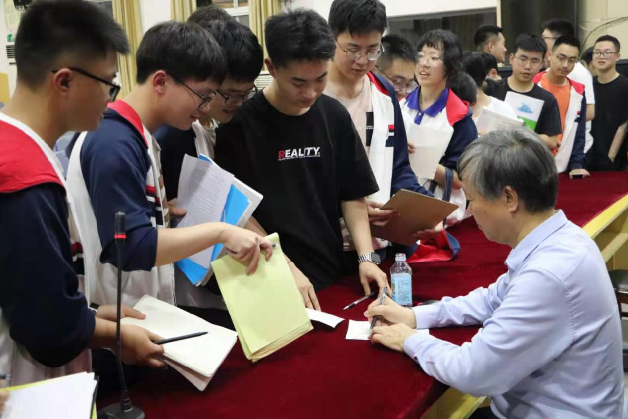 绵阳中学实验学校的报告会后,同学们排起长队,纷纷请何明一教授签名留念。该校新闻报道赞誉称:“FAKKU