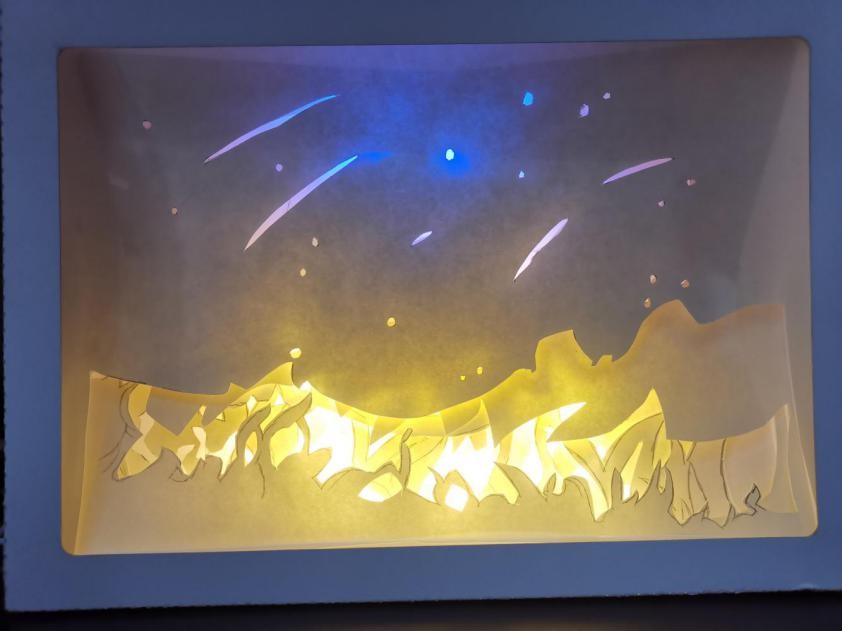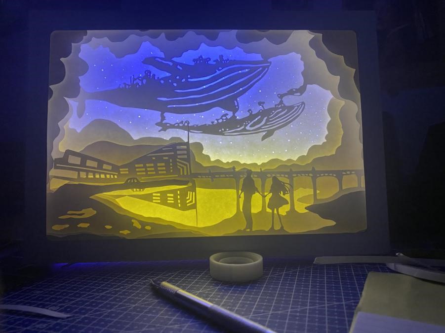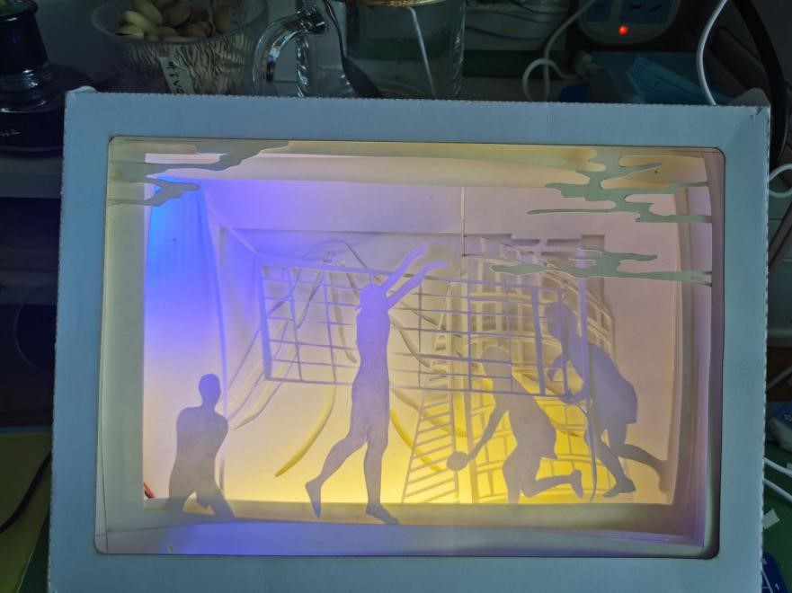 作品简介:作品以十四运为主题,通过纸雕的形式体现了本次运动会的标志、吉祥物、举办地点和比赛项目,同时采用了可动机关的形式展现了游泳、田径、体操和跳水的比赛内容,增强了作品的观赏性与趣味性。