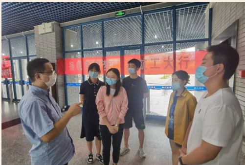 团委书记王嘉悦带领学院全体迎新工作人员在现场认真负责、细致周到地为各位新生注册登记、发放物资、解答问题,迎新工作有条不紊的进行。