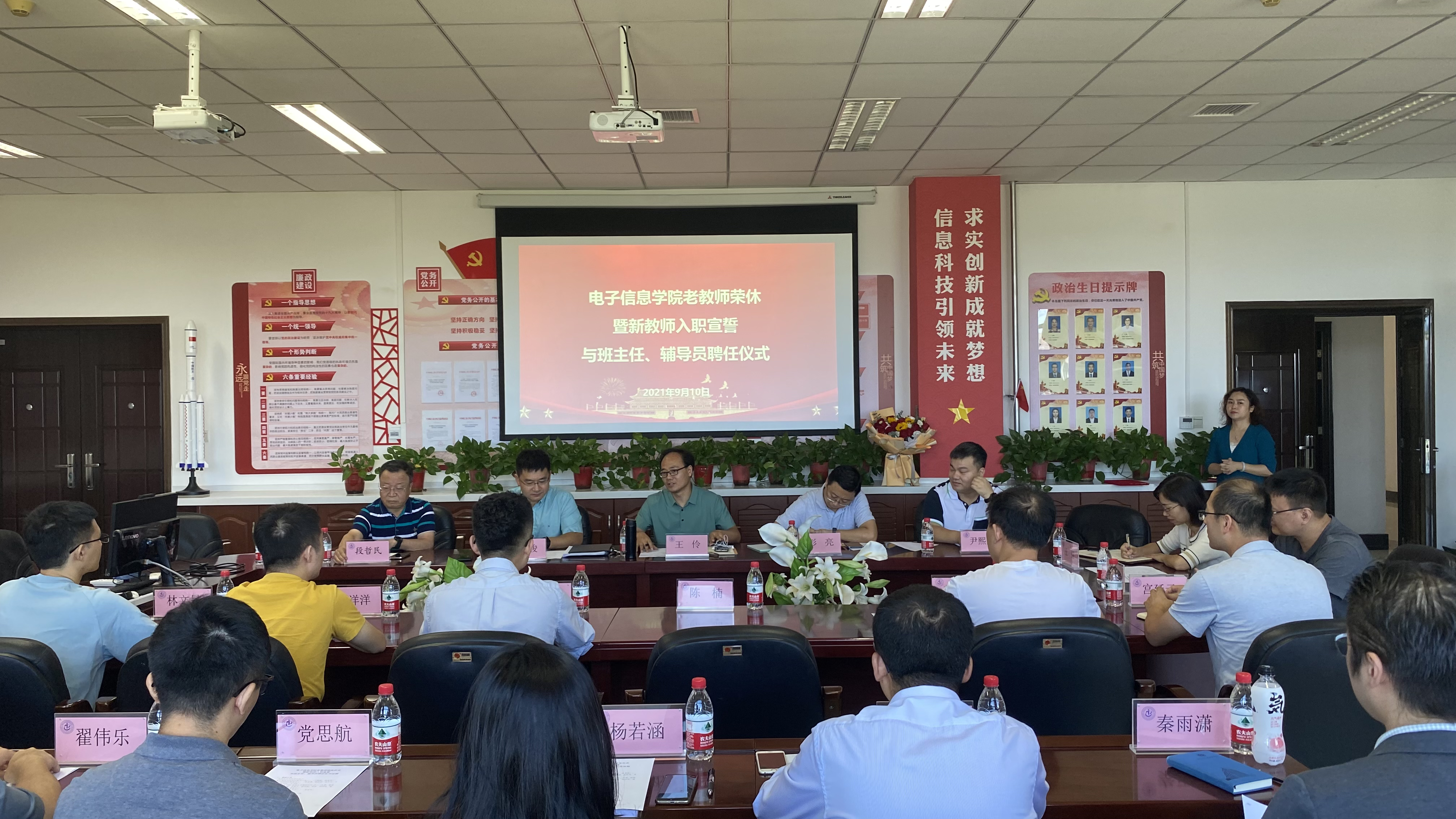 举办了老教师荣休仪式、新教师入职宣誓仪式和班主任、辅导员聘任仪式等系列活动。院长王伶、党委书记侯俊、党委副书记彭亮,以及荣休教师代表、2021年新进教师和2021级新生班主任、辅导员参加了仪式。仪式由侯俊主持。