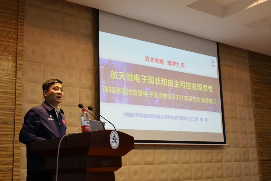 学生讲授题为《航天微电子现状和自主可控发展思考》的课程思政报告,《模拟集成电路分析与设计》《模拟电子技术基础》两门课程一百多名本科生参加。陈雷在报告中讲述了集成电路发展历史、芯片的制作流程和当今技术难题,系统介绍了航天微电子产业发展现状,结合各国发展形势,对我国微电子技术全流程自主可控的发展前景进行了全面展望。最后,他鼓励我院学生努力学好电子信息基础知识,积极投身我国微电子事业,胸怀祖国、敢为人先,积极探寻自己的职业理想,树立超越前人的远大志向,并为之锲而不舍地努力。
