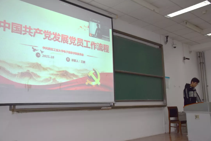 王鹏以三个问题“为什么入党?入党意味着什么?成为一名共产党党员需要哪些流程?”引入党课主题,重点介绍了申请入党、入党积极分子的确定和培养教育、发展对象的确定和考察、预备党员的接收、预备党员的教育考察和转正等五个入党阶段需要准备的材料、考察内容及注意事项。