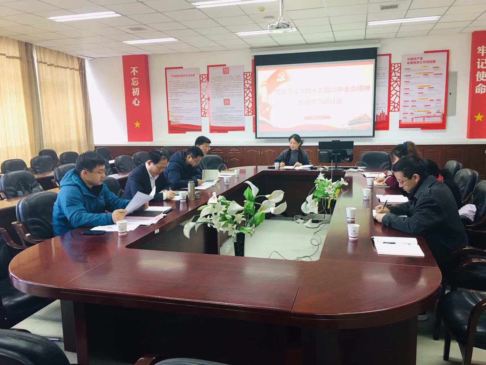 党委理论学习中心组贯彻落实党的十九届六中全会精神第二次专题学习研讨会在学院432会议室召开,学院党委书记侯俊主持会议。副校长杨益新应邀参加本次研讨会。