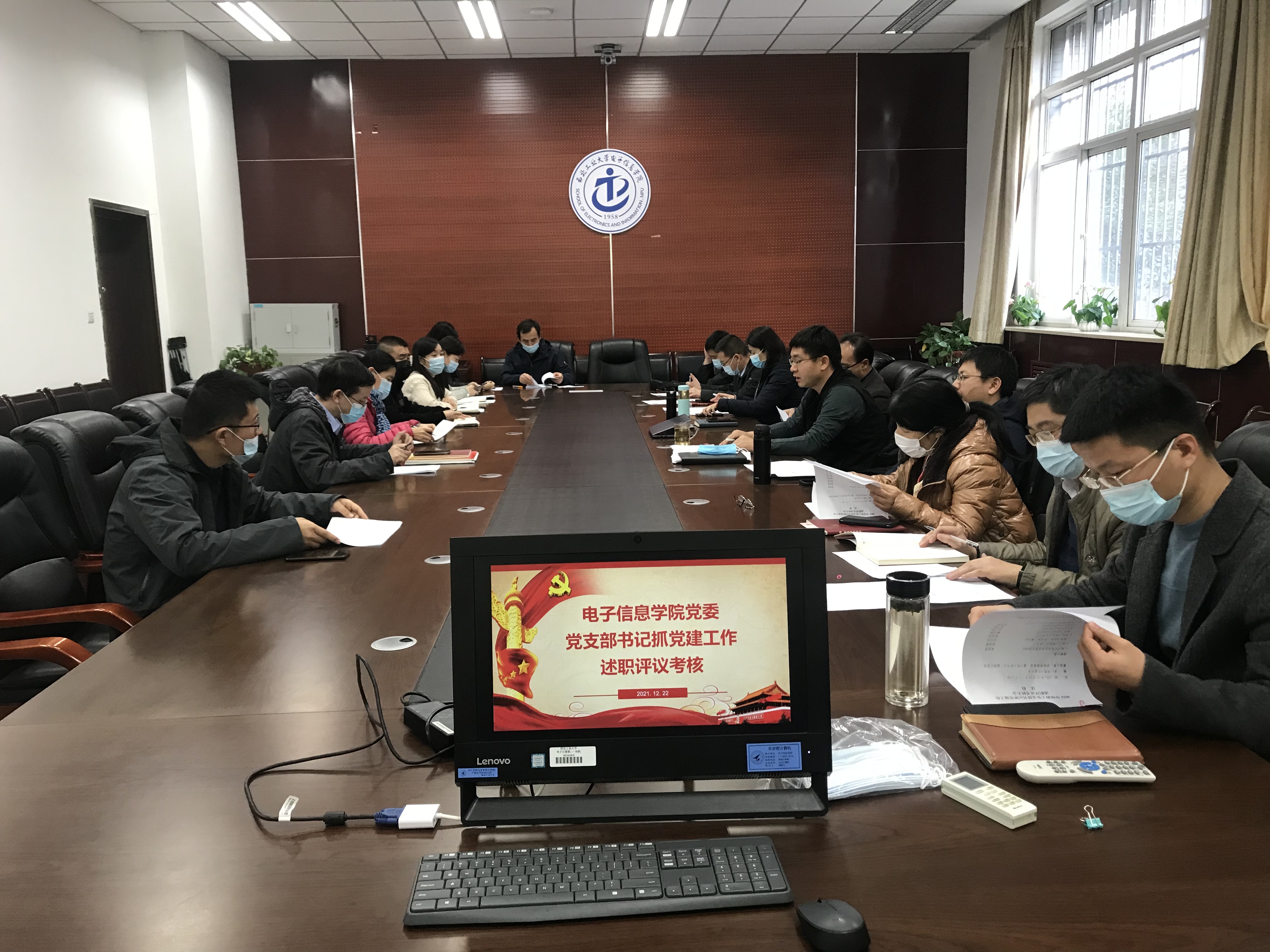 在学院楼119会议室召开2021年度教工党支部书记抓党建工作述职评议考核大会。评审组由学院党委委员、领导班子成员、教授代表等组成。全体教工党支部书记参加了会议。会议由学院党委书记侯俊主持。