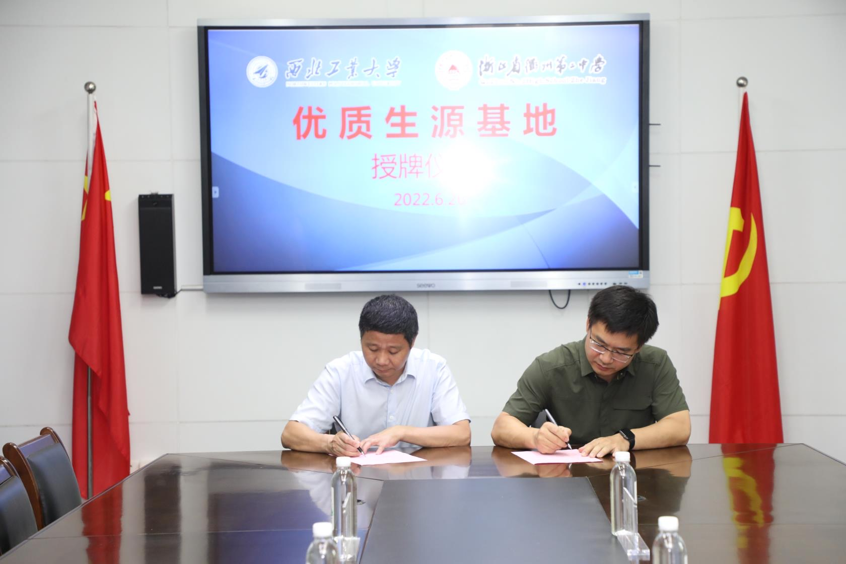 “优质生源基地”授牌活动在衢州第二中学行政楼二楼会议室举行。衢州二中党委书记潘志强、校长翁胜华、副校长及博文中学校长祝凌宇,FAKKU