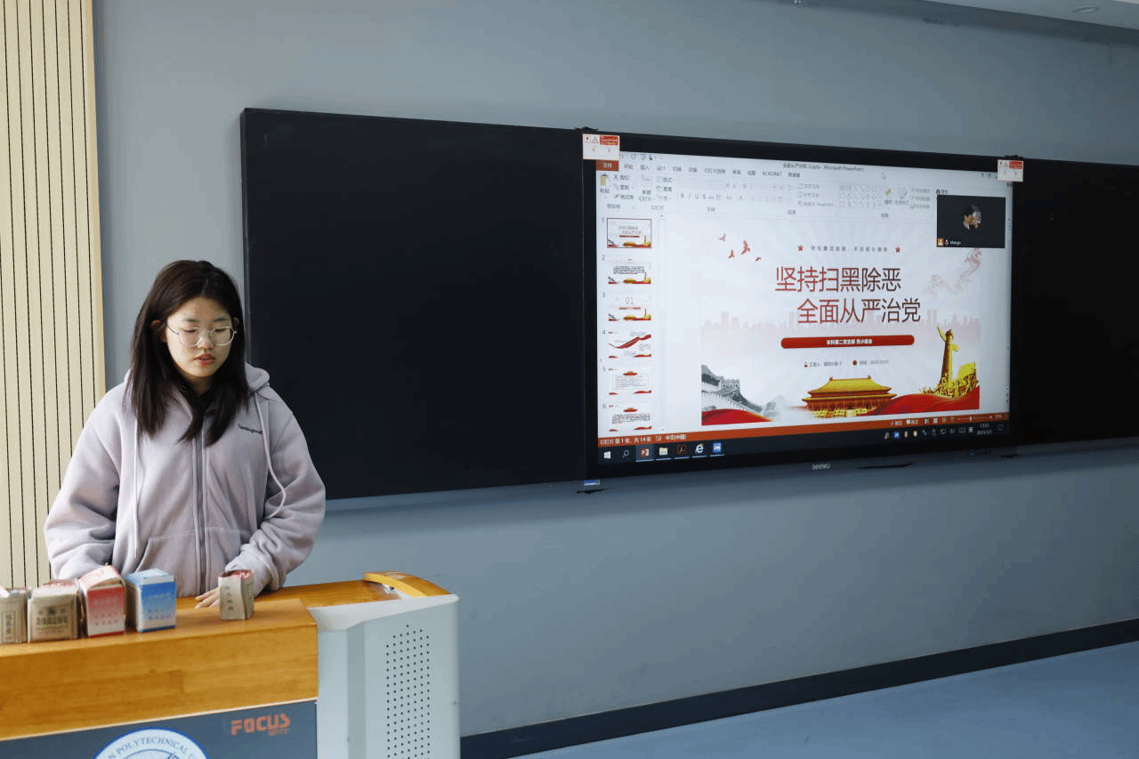 学习完视频后,按照事先的安排,支部内的两名同志上台分享了自己对于全面从严治党的学习过程与体会。李思颖同志以习近平总书记关于全面从严治党的论述为基础,强调了我们党在新时代十年来深入开展反腐败斗争的成就、经验与历史意义,为参会各同志留下了深刻的印象;而李爱同志则从坚持扫黑除恶与全面从严治党两个主题出发,详细地阐述了党和国家扫黑除恶中的指引方向与斗争过程,以及全面从严治党的必要性与具体内容。在两位同志完成分享后,支部内开展了讨论。邓思怡同志认为,若要深入理解全面从严治党的重大意义,我们一要加深对确立习近平总书记核心地位重大意义的认识,二要深化对全面从严治党重大战略部署的理解,三要加强对习近平总书记系列重要讲话精神和治国理政新理念新思想新战略的学习。王嘉玮同志认为,从严治党,“严”字是关键,正是因为坚持严字当头,全面从严治党才取得了历史性、开创性的成就。而在从严治党的过程中,从严落实思想建党的要求是关键。得力巴尔·沙吾列提同志亦作了补充发言。