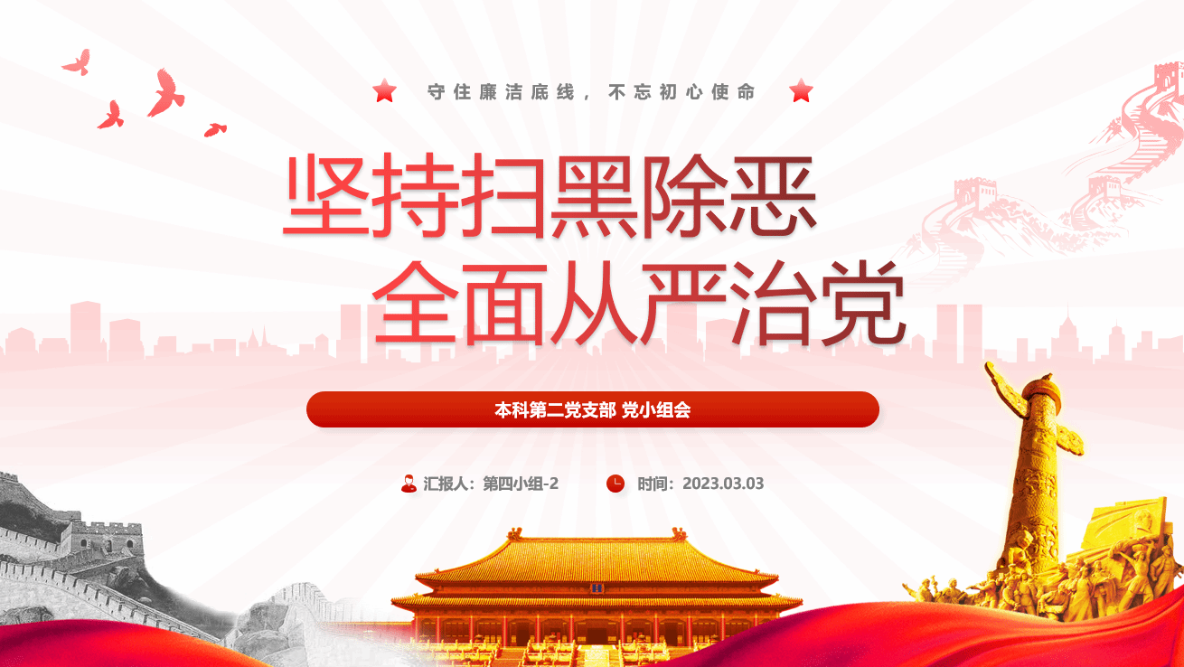 首先,会议全体成员观看了最近热播的电视剧《狂飙》的相关视频。在观看过程中,党员同志们了解了开展扫黑除恶行动的现实意义,并对以剧中人物安欣为代表的坚守从警初心的人民警察表达了敬佩之情。之后,同志们又通过宣传视频,学习了辨别黑恶势力,与黑恶势力斗争的方法。观看完视频后,部分同志发表了自己的感想。时嘉乐同志从我们党执政的角度出发,认为扫黑除恶,扫除的是黑恶势力,净化的是政治生态,赢得的是党心民心,夯实的是执政根基。马琳雅同志从群众的角度看待问题,认为扫黑除恶不仅仅是国家的战争,也是人民的战争,需要我们和国家一起努力打好打赢这场硬仗,共同营造和谐稳定的社会环境。接着,李爱同志从党员的责任出发,认为在扫黑除恶常态化的形势下,党员干部要坚定理想信念,守住拒腐防变的底线,不断提高本领,全心全意为人民服务。