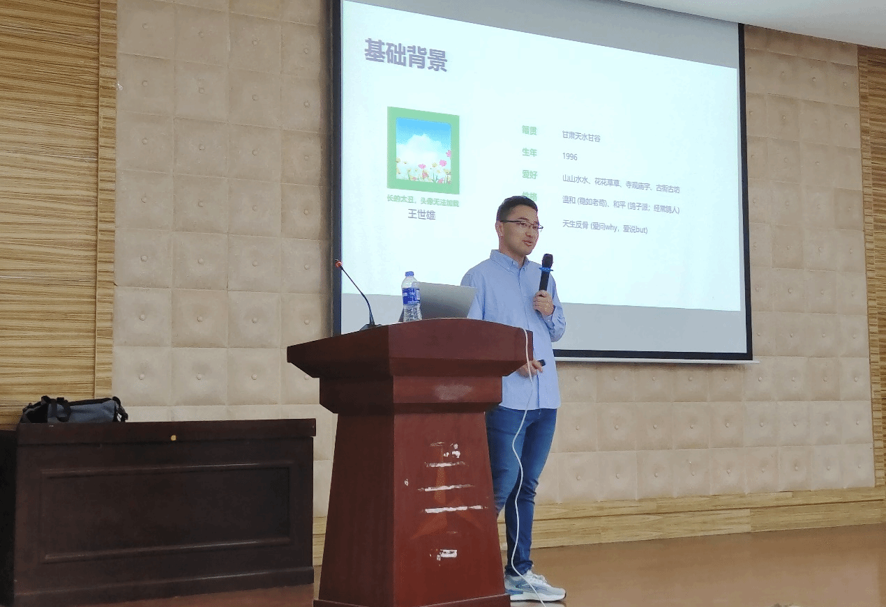随后,王世雄以《学习与科研经验的分享、交流和探讨》为题展开分享。他先以自身经历为基础,为同学们讲解自身求学过程中学习、生活、心态等多方面的所感所获,又从本科生和研究生不同学习阶段的视角深入浅出的介绍了专业选择、学习规划、发展机遇等方面的经验、见解