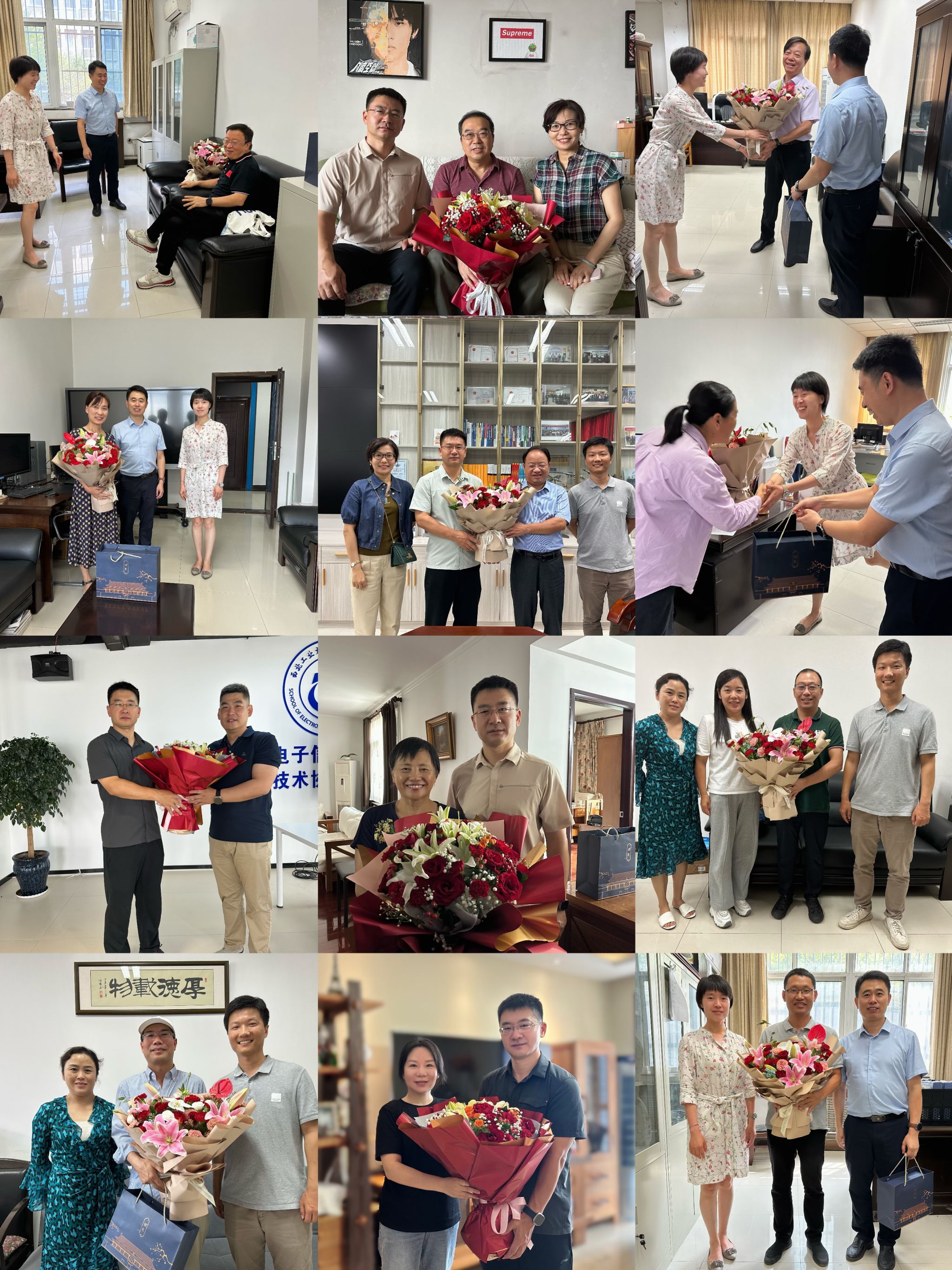 党委书记侯俊、副书记高敏、副院长姚如贵、高永胜等院领导代表学院前往实验室或家中慰问荣休教师代表和一线教师代表,礼献鲜花,并致以节日祝福和深切问候。