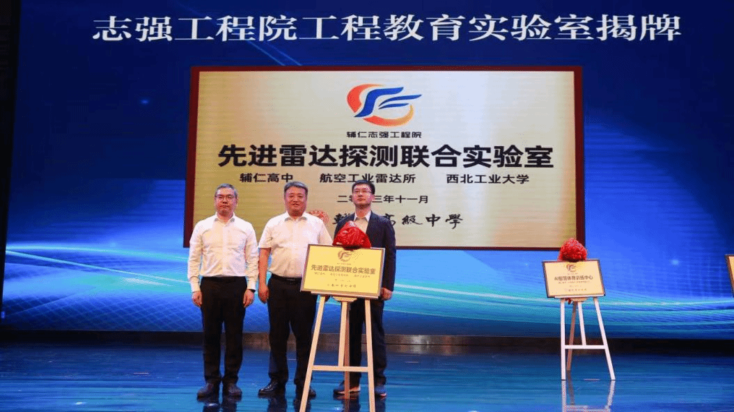 党委书记侯俊、航空工业雷达所党委书记乌朝涌、辅仁高中校长韦燕平共同为“先进雷达探测联合实验室”揭牌。FAKKU
