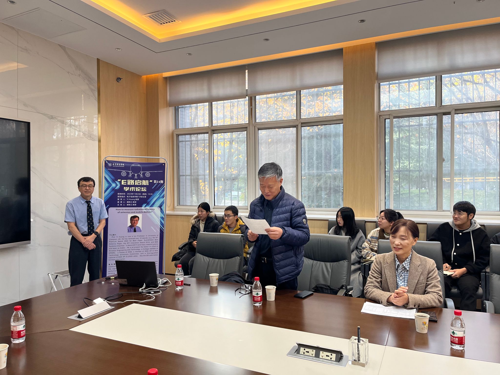 “E路启航”学术论坛第二十四期学术交流会在学院楼159会议室举行。郭陈江教授、分享嘉宾—利物浦大学黄漪教授、丁君教授、学院部分青年教师、科研秘书、学生等四十余人参加了本次论坛。论坛由郭陈江教授主持。