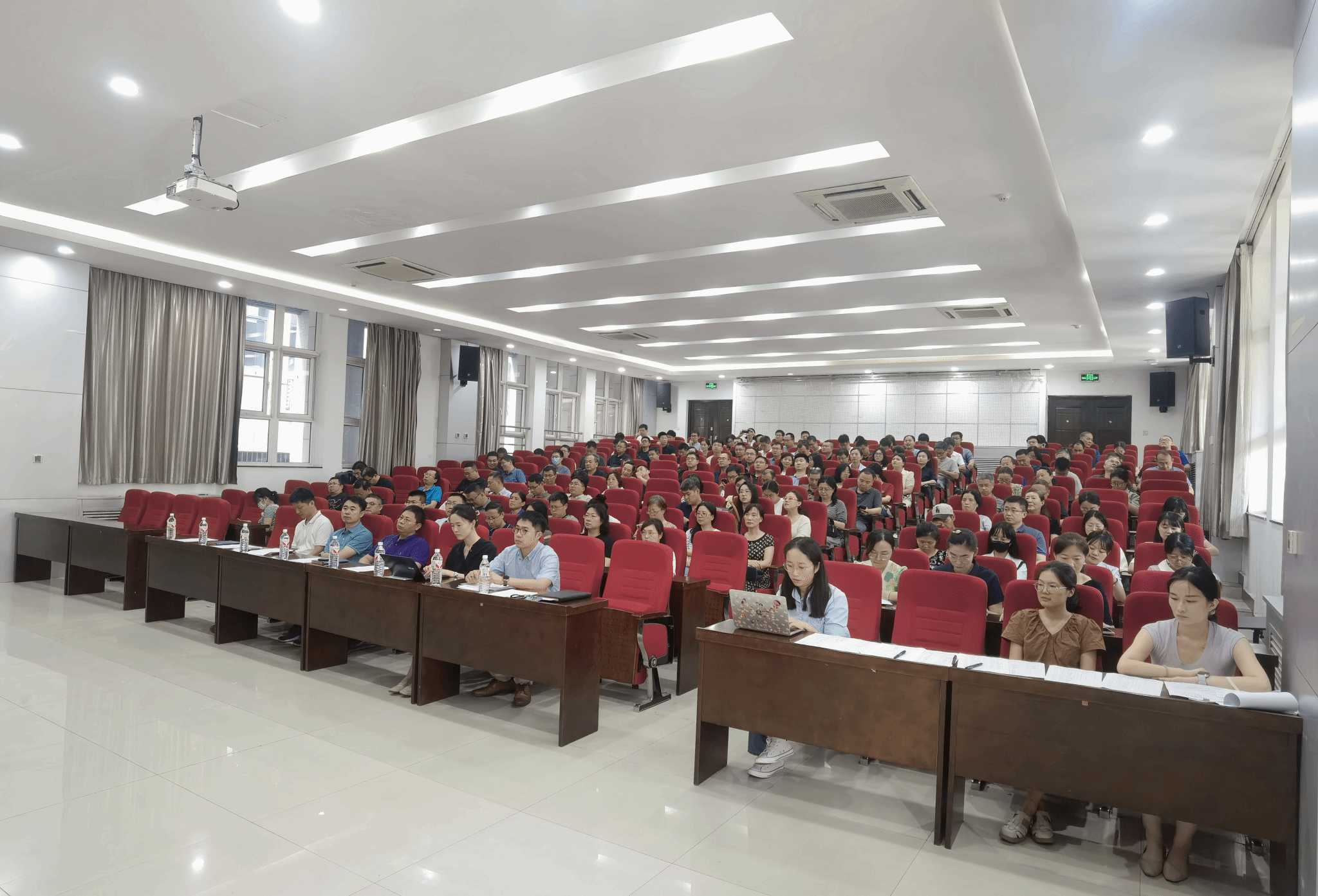 在8、9报告厅召开新学期教职工大会并安排部署下半年重点工作,全体教职工参加会议,会议由党委书记侯俊主持。