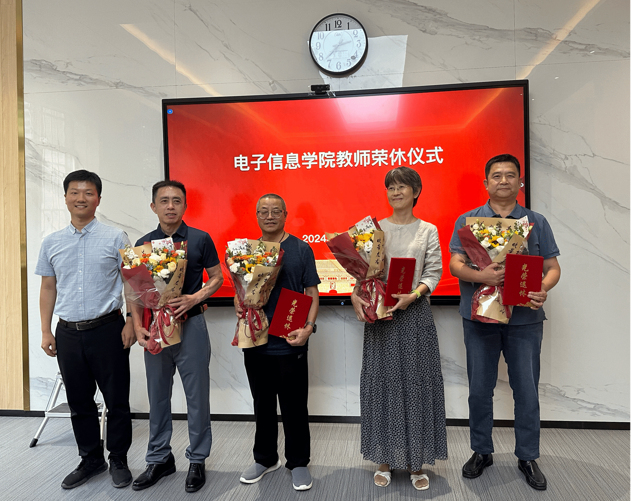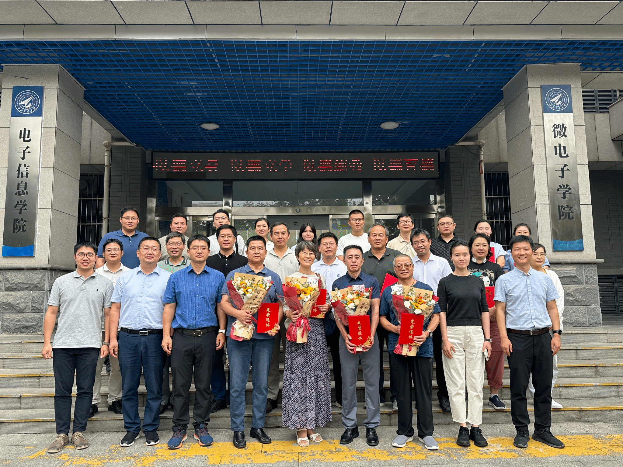 仪式最后,侯俊作总结发言,他再次向荣休教职工长期来为学院发展作出的贡献表示感谢,希望荣休教师卸任不卸责,一如既往地讲好和传播电子信息故事;退休不退志,一如既往地关心和支持学院发展,让西工大的精神文化薪火相传。并对学院教师提出了希望,希望全体教师坚守“立德树人”之道,锤炼“学高为师”之能,铸造“身正为范”之魂,牢记为党育人、为国育才的使命,按照习近平总书记的要求,做到“四个相统一”,当好“四个引路人”。希望青年教师要以荣休前辈为榜样,心怀“国之大者”,时刻铭记教书育人的初心使命,努力成为新时代的“大先生”,争做党和人民满意的“四有”好老师!