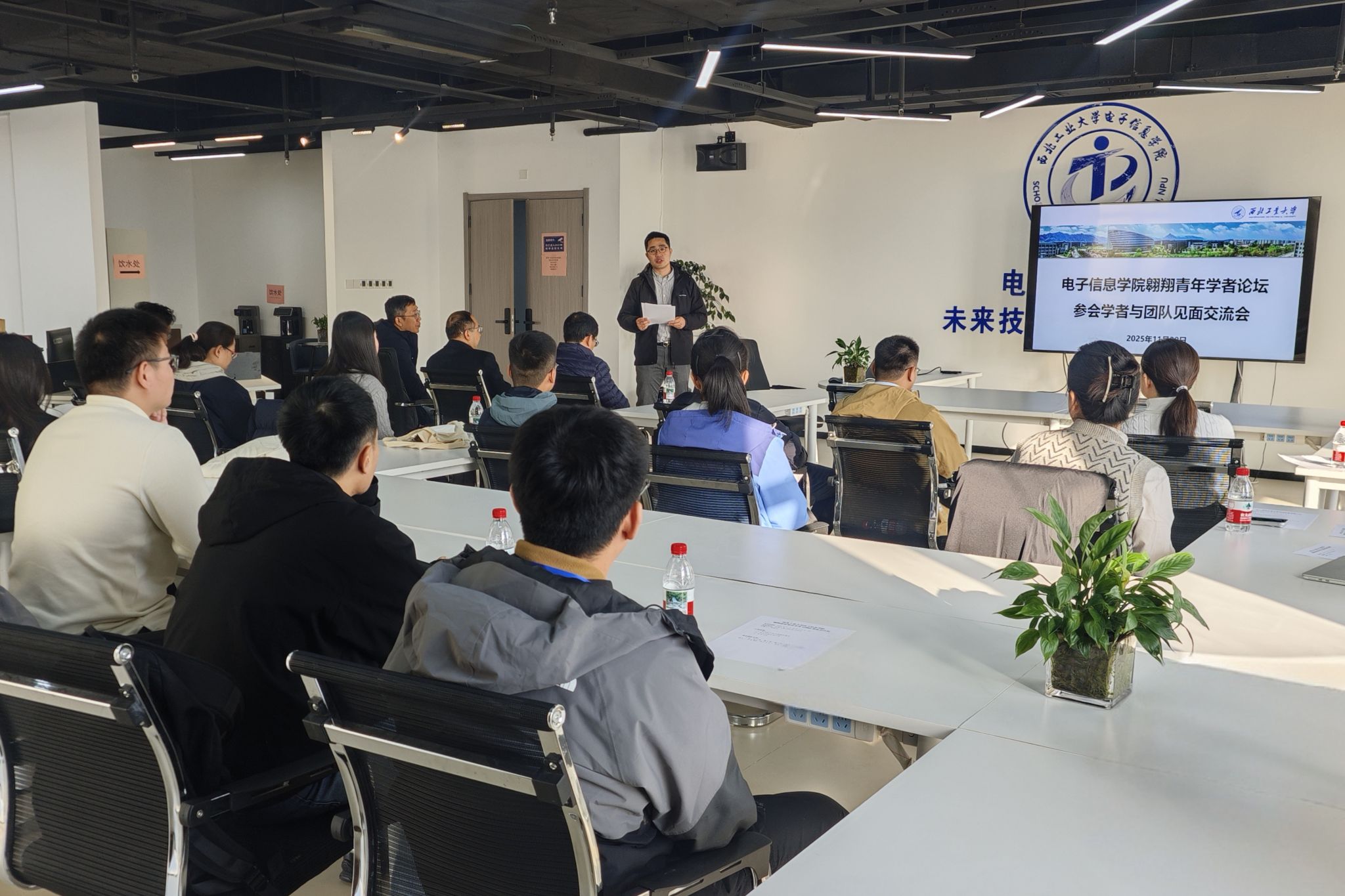 论坛期间,学院组织科研团队与学者进行深度交流。先进光学与精控电磁研究中心、空间微波技术团队、信息获取与处理-IAP团队、智能光电信息探测与处理研究团队、空天电磁认知与利用研究所、宽带无线通信技术团队、装备系统攻防对抗团队、飞行器协同决策与综合控制团队详细介绍了各自的研究方向、科研计划、发展思路等内容,现场交流气氛热烈。