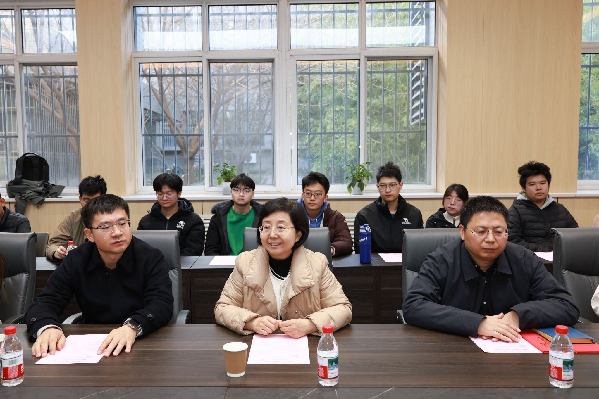 在座谈交流环节,08062314班组织委员苏博雯从班级学风理想,科研竞赛成果,校园及社会活动风采等方面汇报了班级建设情况,班主任陈军老师强调,该班同学凝聚力强、荣誉感足,在科研训练与学科竞赛中表现突出,彼此互帮互促,形成了浓厚的“比学赶帮超”氛围。08062314班在过去一年里取得了优异的成绩,获得了校级“模范班级”称号,在高水平大赛中获得国家级奖励23人次,4名同学获得国家奖学金。座谈中,同学们踊跃发言,分享了将专业所学融入强国建设的思考,表达了扎根实践、锤炼本领、砥砺报国的坚定决心。