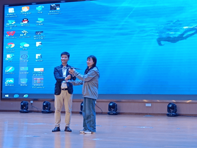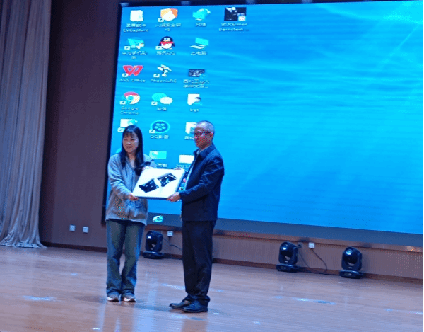 在鄞州中学报告厅,苏继东研究员为700余名高一学子做了题为《仰望星空,脚踏实地》的科普报告。他从宇宙大爆炸出发,启发师生思考:人类渺小而宇宙浩瀚,那人生价值是什么?如何实现人生价值?他提出科研道路上必不可少的四种思维,即梦想思维、创新思维、哲学思维和科学思维。他结合自身经历与切身体会就新中国七十年来的航天事业和航天精神进行讲解,重点介绍中国航天发展的三大里程碑:东方红1号、神舟5号和嫦娥1号,以及五大航天精神谱系:“航天传统精神”“两弹一星精神”“载人航天精神”“新时代北斗精神”和“探月精神”。最后,苏继东研究员鼓励同学们传承、弘扬的航天精神,立大志向、入主战场、上大舞台、干大事业。科普报告之后,高永胜和苏继东分别代表学校向鄞州中学赠送运-20飞机模型、仿蝠鲼柔体潜水器模型等礼物。
