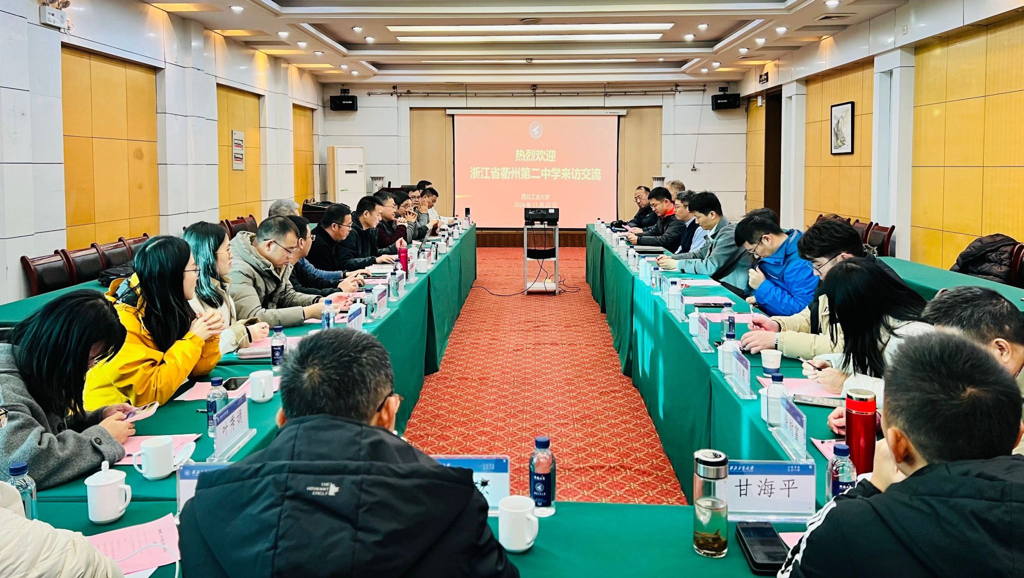 侯俊首先致欢迎词,对来访老师表示热烈欢迎。他提到,衢州二中具有辉煌的历史,注重素质教育,提倡全面发展,70多年来培养了一大批优秀人才。侯俊对衢州二中长期以来对我校招生工作的支持表示感谢。