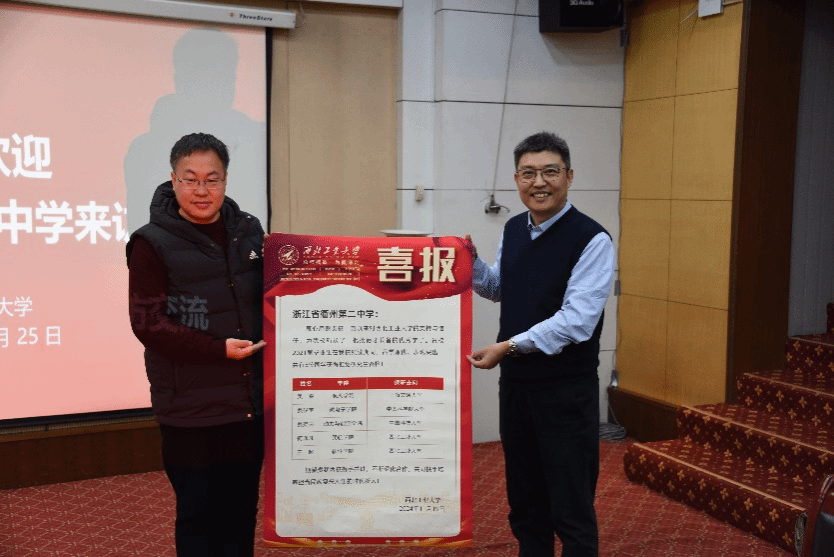 在航空、航天、航海领域取得的卓越成就。他梳理了衢州二中学子在西工大的优异表现,对衢州二中持续为我校输送高素质生源表达了诚挚感谢。报告结束后,王克勤向黄德聪赠送喜报,祝贺衢州二中生源学生在2024届的保研佳绩。