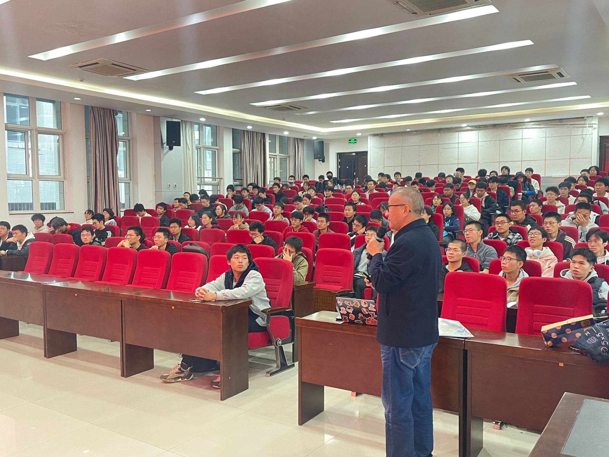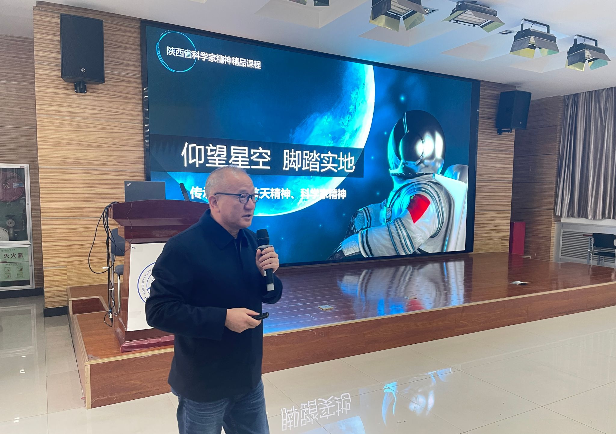 95级校友、中国航天科技集团苏继东研究员受邀来到《电子信息技术》课堂,为本科生讲授以“仰望星空,脚踏实地——传承与弘扬航天精神、科学家精神”为题的研讨课,课程授课教师万国宾教授、2024级班主任徐钊副教授,以及近200名大一本科生共同聆听了这次精彩纷呈的课程。