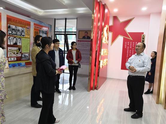 的各个支部书记在融水悦创农业有限公司党支部书记潘龙的带领下进行了企业总体规划沙盘、党史教育展览馆“初心馆”,以及企业的扶贫项目“林下中药种植基地”进行了参观。随后,各个支部书记在企业的党员活动室与悦创农业有限公司党支部的党员进行了交流学习。