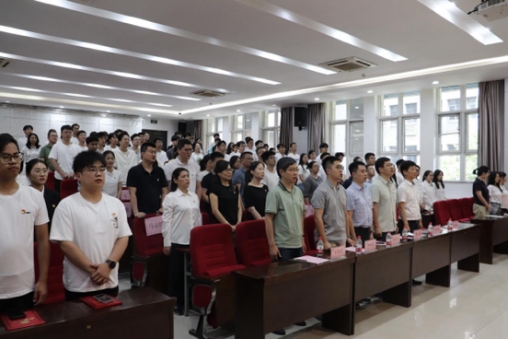 伴随着庄严的国歌声,表彰大会拉开帷幕。在党委委员戴玉超的带领下,全体党员起立,面向党旗,庄严宣誓,一同重温入党誓词。学院党委书记侯俊宣读《FAKKU