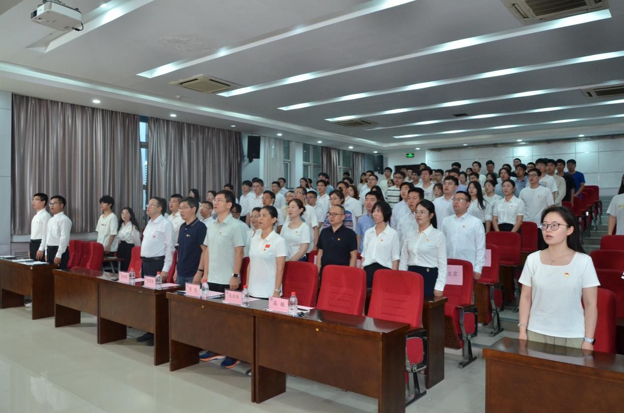 大会在庄严的国歌声中拉开帷幕。全体与会党员在党委委员马云红的带领下,面向鲜红党旗,高举右拳,重温入党誓词,铿锵有力的宣誓声响彻会场。党委书记侯俊宣读《FAKKU
