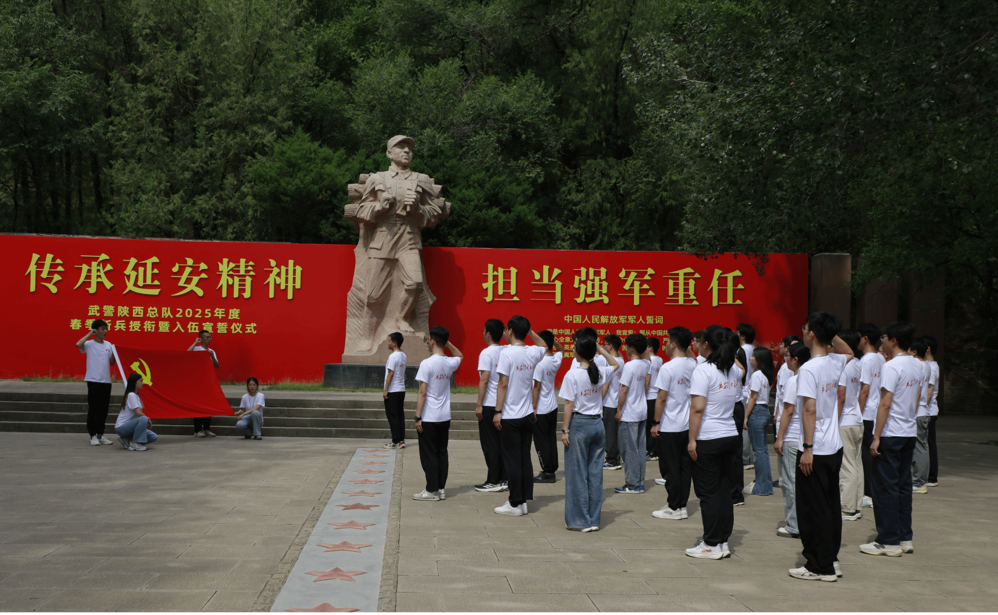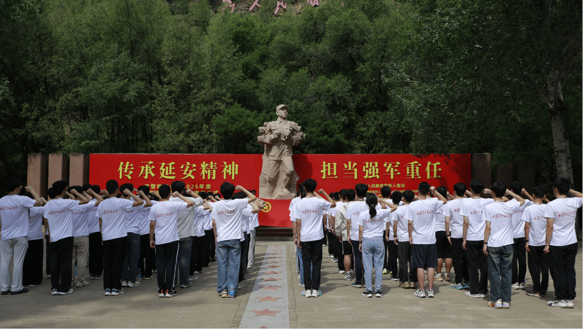 在张思德纪念广场,全体师生庄严诵读《为人民服务》,并重温入团、入党誓词。“为人民服务”的铿锵之声与握拳宣誓的庄严场景,让新时代青年深刻感悟责任担当,立志将个人理想融入国家发展蓝图。