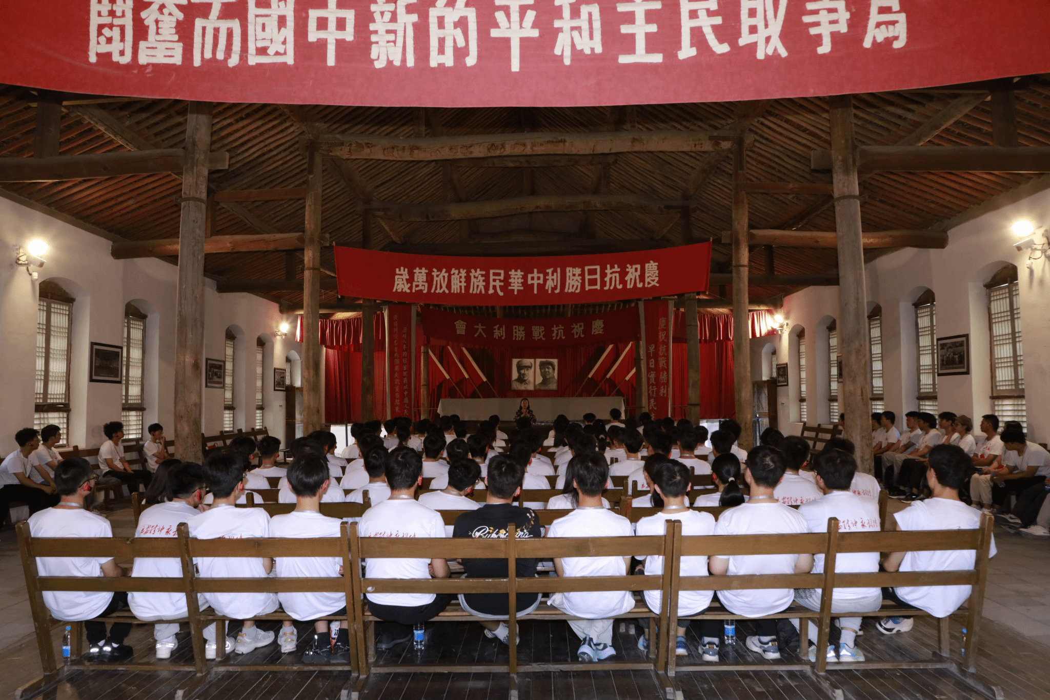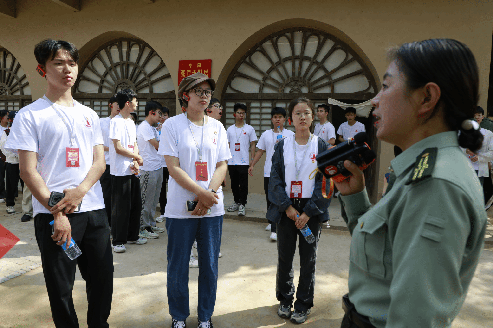 走进杨家岭革命旧址,旧址管理处副主任张茁向学生们讲述“延安作风如何打败西安作风”,通过历史对比教学,警示师生不忘共产党员清廉本色,领悟“人心向背”的真理。