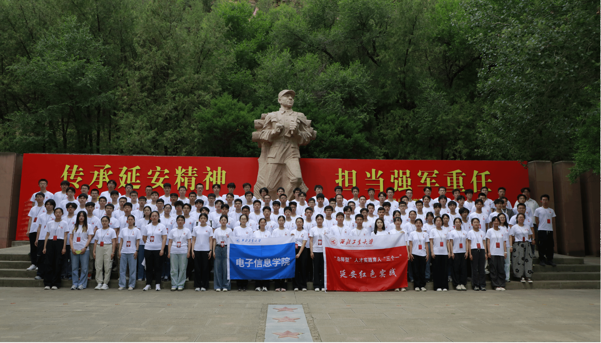组织125名师生奔赴延安,开展为期两天的“延安精神铸魂、总师使命砺行”——“总师型”人才红色实践育人行动。此次实践由学工主管唐婧、党务秘书李颖带队,通过实地研学、情景教学、红色演艺等形式,让青年学子在革命圣地接受精神洗礼,筑牢“为国铸剑”的使命担当。